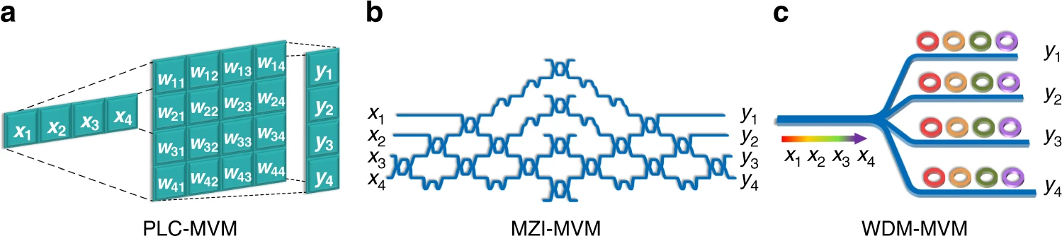 که نشون میده که چطور توسط ماجولیتور ها (modulator) میشه سیگنال نوری رو پردازش کرد و اعمال ماتریسی روش انجام داد. که نتیجه اش این میشه که میشه با تنظیم سیستم، سیگنال های نوری رو پردازش کرد و در خروجی سیگنال های پردازش شده رو تحویل گرفت. خیلی از ماجولیتور های معمول بازار فعلا حرارتی هستند ولی اینها رو میشه با تکنولوژی MEMS که ساختار های مکانیکی میکرو الکترونیکی هستن انجام داد که توانی برای نگه داشتن یک حال مصرف نمیکنند و فقط برای تغییر حالت توان لازم دارند که بسیار عالی هست. توان لازم برای پردازش هر بیت به چگالی بیت های داخل یک چیپ بستگی داره ولی برای یک چگالی مساوی، این میتونه توان برای مثال 1 پیکو ژول برای پردازش یک بیت رو به 1 فمتو ژول تبدیل کنه.